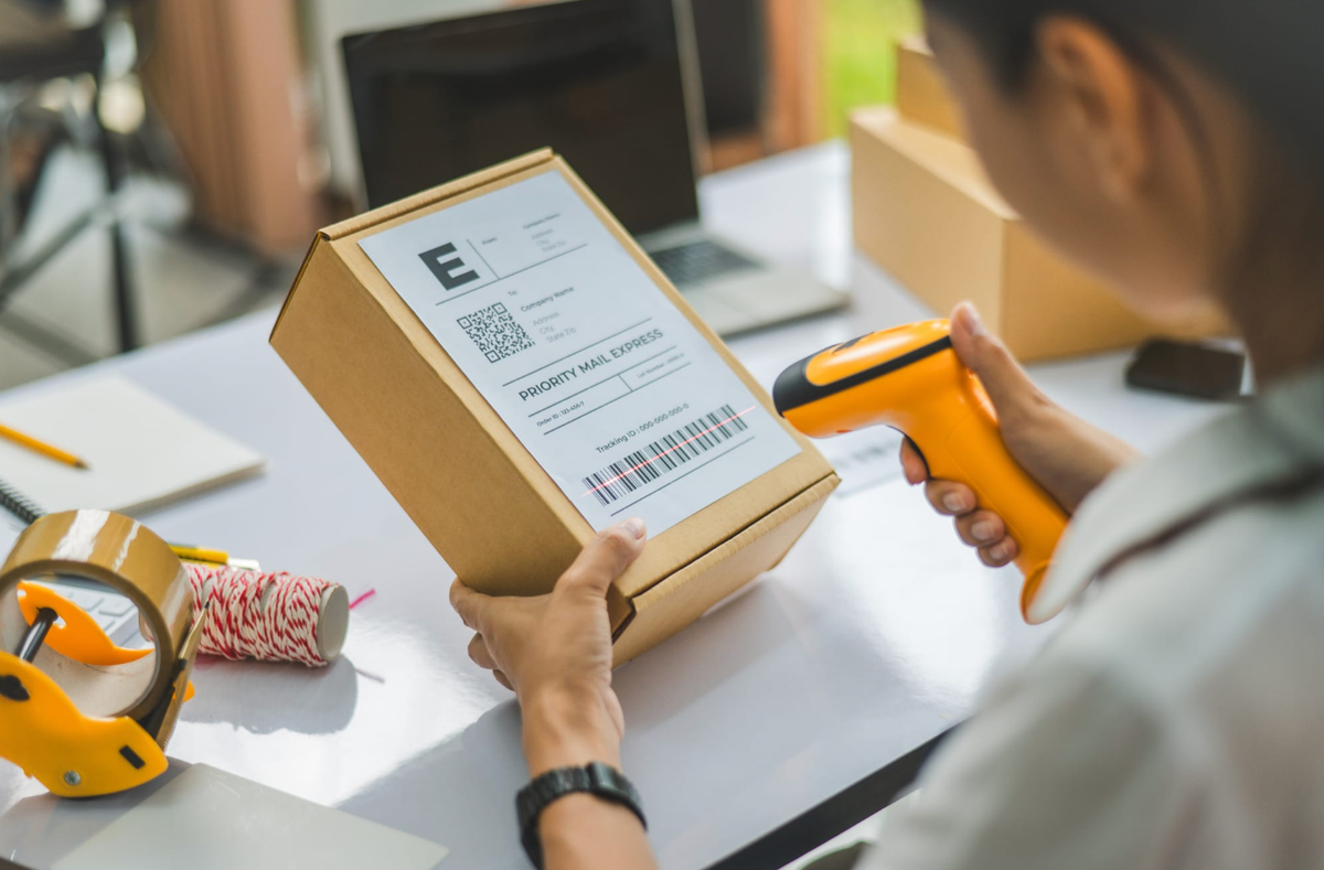 2. Un empleado escanea el código de barras con su teléfono o con un escáner portátil.